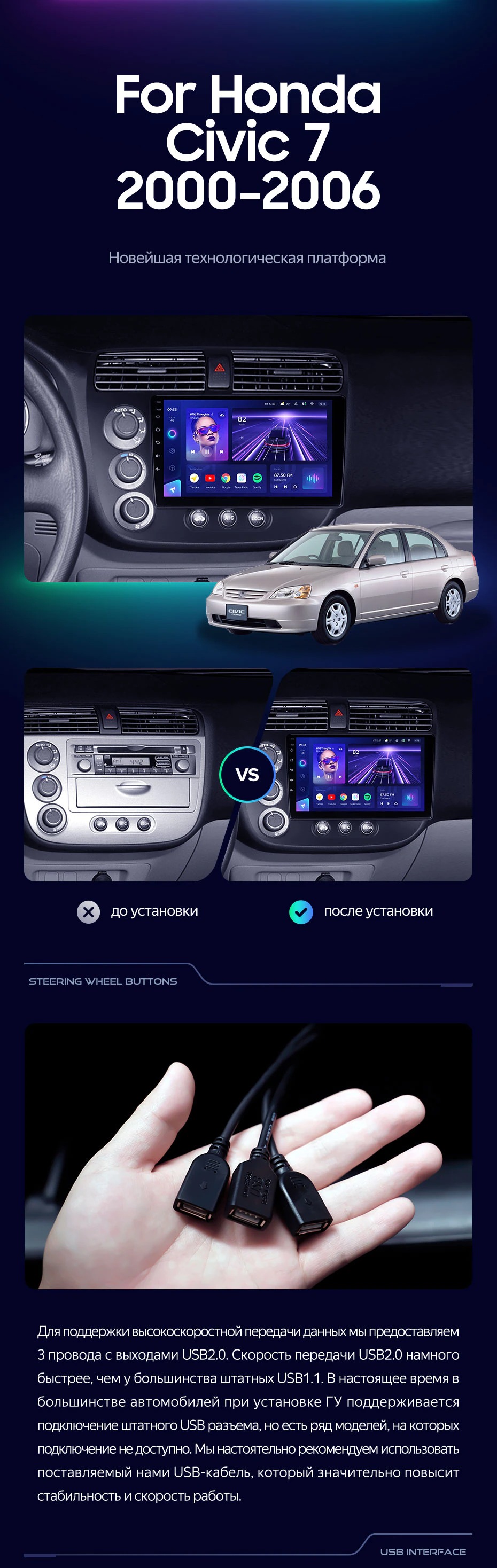 Штатная магнитола Teyes CC3 2K 360 6/128 Honda Civic 7 (2000-2006) F1 (13") - купить всего за 51 000 руб. в интернет-магазине в Ярославле Teyes.com.ru. ✓ Самый лучший выбор мультимедиа ✓ Лучшая замена штатному ГУ ✓ Тел. +7 (800) 775-31-74
