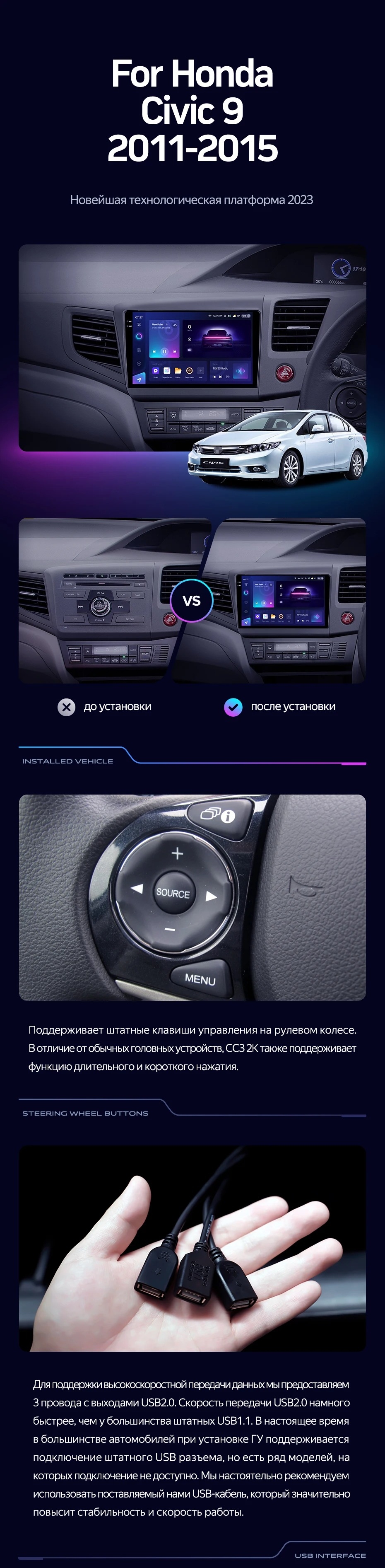 Штатная магнитола Teyes CC3 2K 4/64 Honda Civic 9 FB FK FD (2011-2015) Правый руль - купить всего за 49 400 руб. в интернет-магазине в Ярославле Teyes.com.ru. ✓ Самый лучший выбор мультимедиа ✓ Лучшая замена штатному ГУ ✓ Тел. +7 (800) 775-31-74