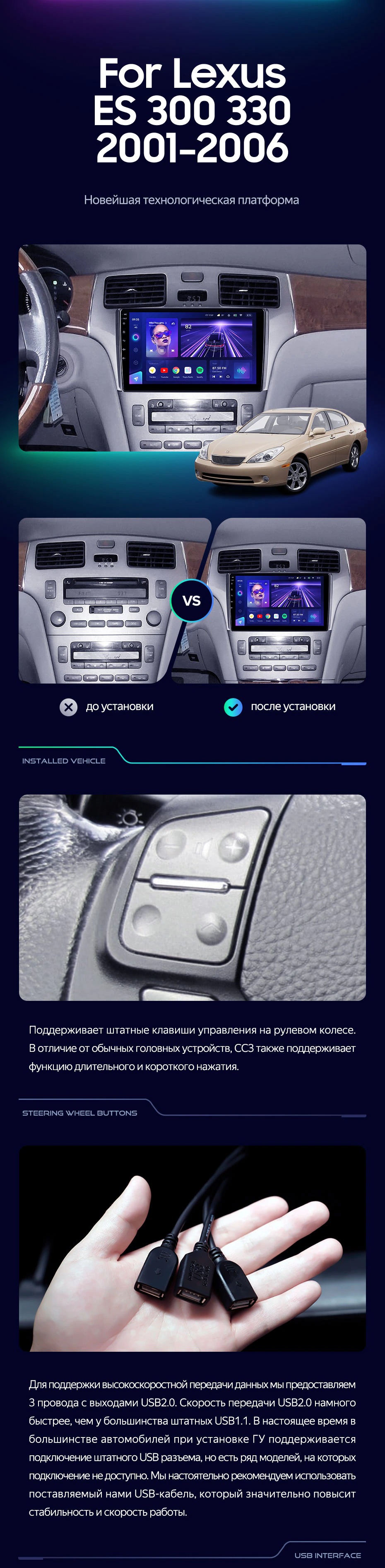 Производитель использует только современные технологические и программные решения, что не заставляет ждать результатов. Новинка компании получила объемный звук с широкими возможностями настройки. Любые помехи или задержки в работе магнитолы исключены. Звуковой чип DPS Adau1701 в сочетании с Rohman32107, подключение посредством оптоволоконного кабеля цифровых выходов — все направлено на превосходный звук.