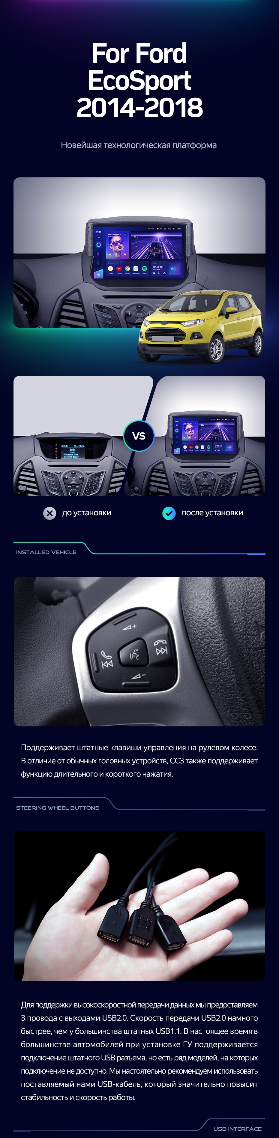 Штатная магнитола Teyes CC3 2K 6/128 Ford EcoSport (2014-2018) F1 - купить всего за 46 200 руб. в интернет-магазине в Ярославле Teyes.com.ru. ✓ Самый лучший выбор мультимедиа ✓ Лучшая замена штатному ГУ ✓ Тел. +7 (800) 775-31-74