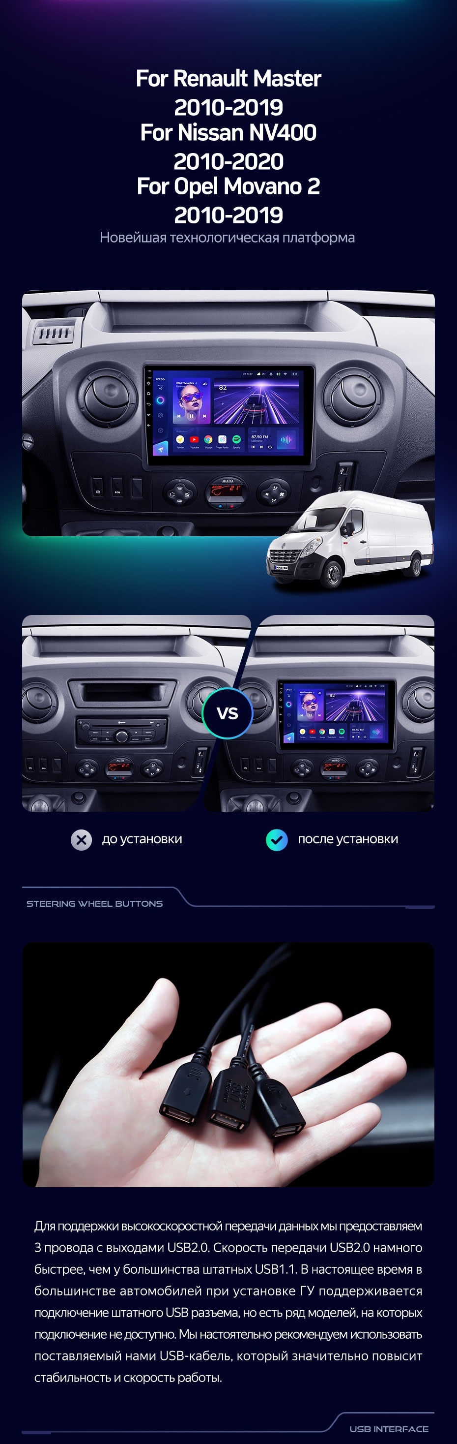 - Удобное и практичное управление голосом с возможностью реализовать 30 команд, отданных русским языком. Это обеспечивает управление основными штатными системами без отвлечения от управления авто. Среди доступных функций ; музыка, карты, навигация и телефонный разговор, возможность отслеживания состояния транспорта при его передвижении.