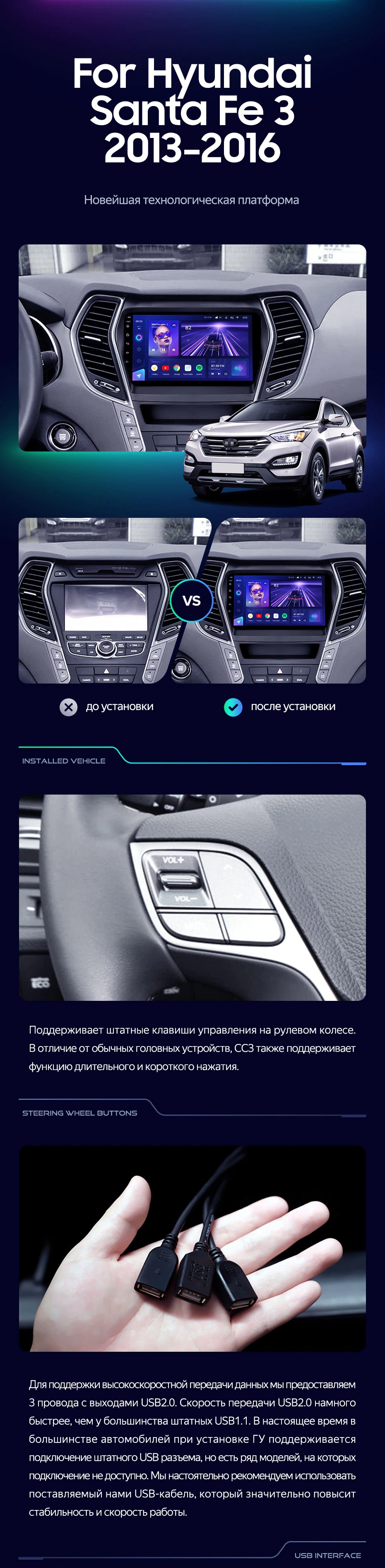 Штатная магнитола Teyes CC3L 4/32 Hyundai Santa Fe 3 (2013-2016) Тип-A - купить всего за 28 000 руб. в интернет-магазине в Ярославле Teyes.com.ru. ✓ Самый лучший выбор мультимедиа ✓ Лучшая замена штатному ГУ ✓ Тел. +7 (800) 775-31-74
