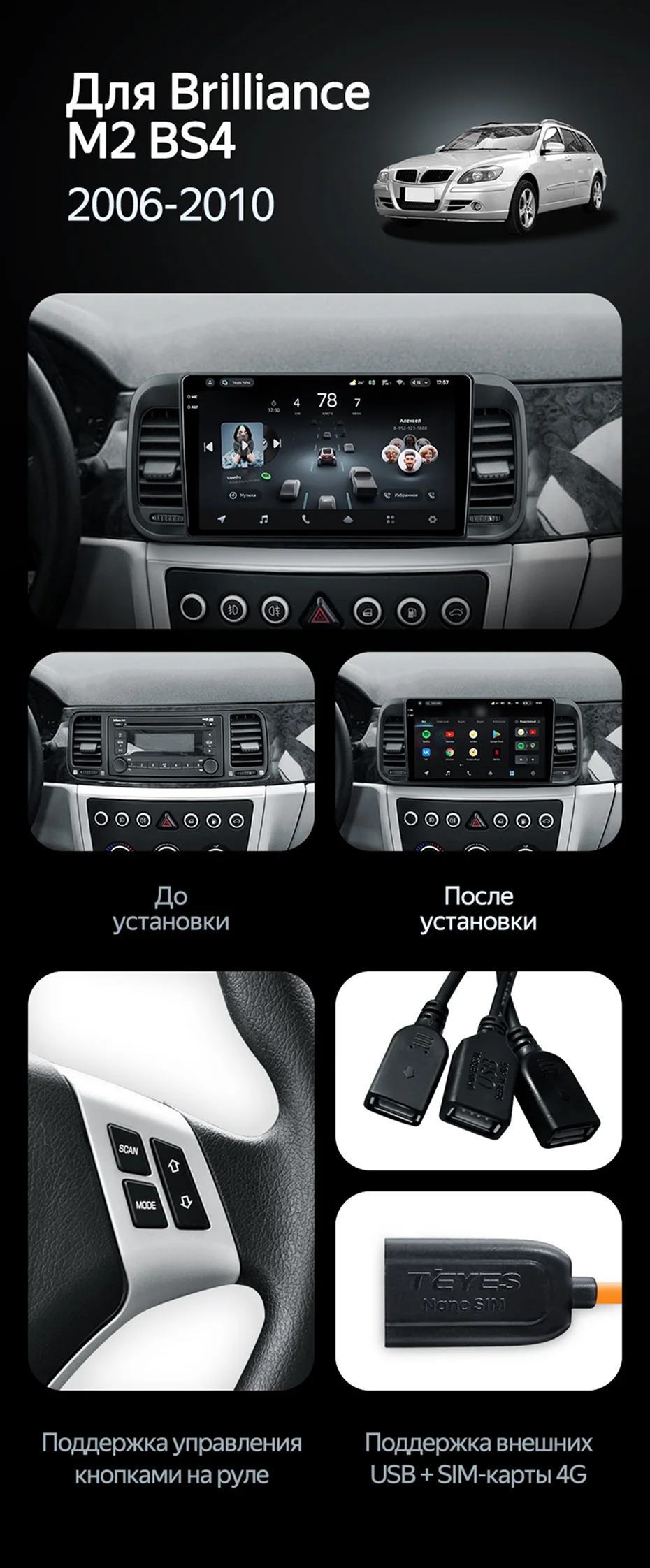 Штатная магнитола Teyes CC4 8/128 Brilliance M2 (BS4) (2006-2010) - купить всего за 47 700 руб. в интернет-магазине в Ярославле Teyes.com.ru. ✓ Самый лучший выбор мультимедиа ✓ Лучшая замена штатному ГУ ✓ Тел. +7 (800) 775-31-74