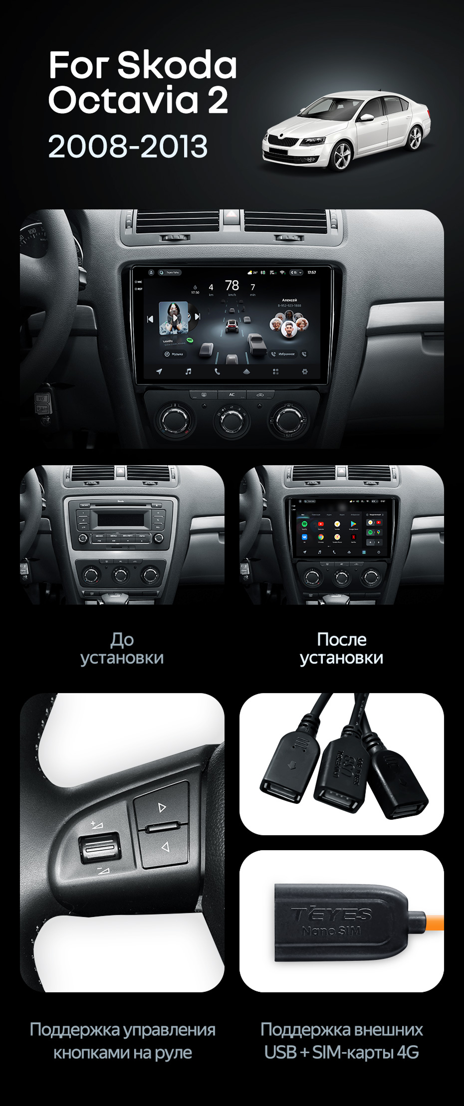 Штатная магнитола Teyes CC4 8/128 Skoda Octavia 2 A5 (2008-2013) - купить всего за 53 230 руб. в интернет-магазине в Ярославле Teyes.com.ru. ✓ Самый лучший выбор мультимедиа ✓ Лучшая замена штатному ГУ ✓ Тел. +7 (800) 775-31-74
