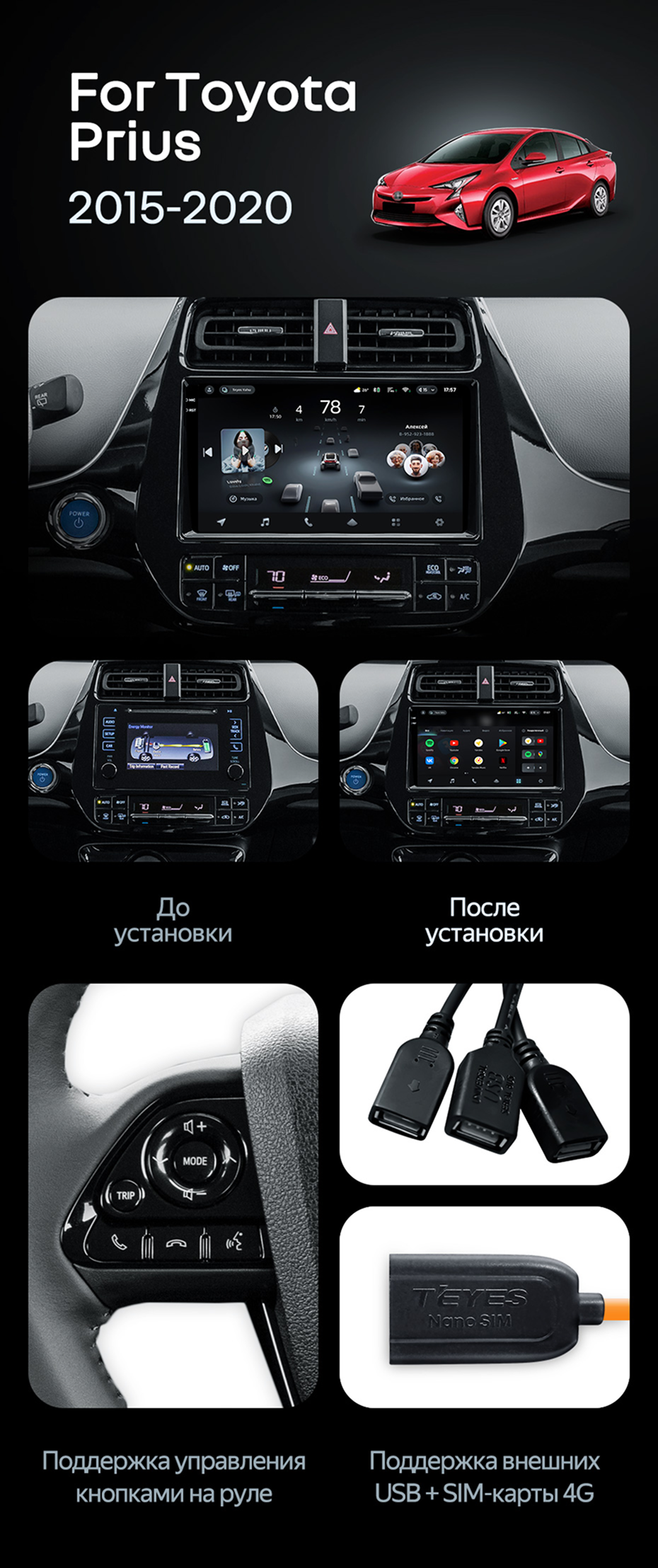 Штатная магнитола Teyes CC4 8/128 Toyota Prius XW50 (2015-2020) - купить всего за 48 500 руб. в интернет-магазине в Ярославле Teyes.com.ru. ✓ Самый лучший выбор мультимедиа ✓ Лучшая замена штатному ГУ ✓ Тел. +7 (800) 775-31-74