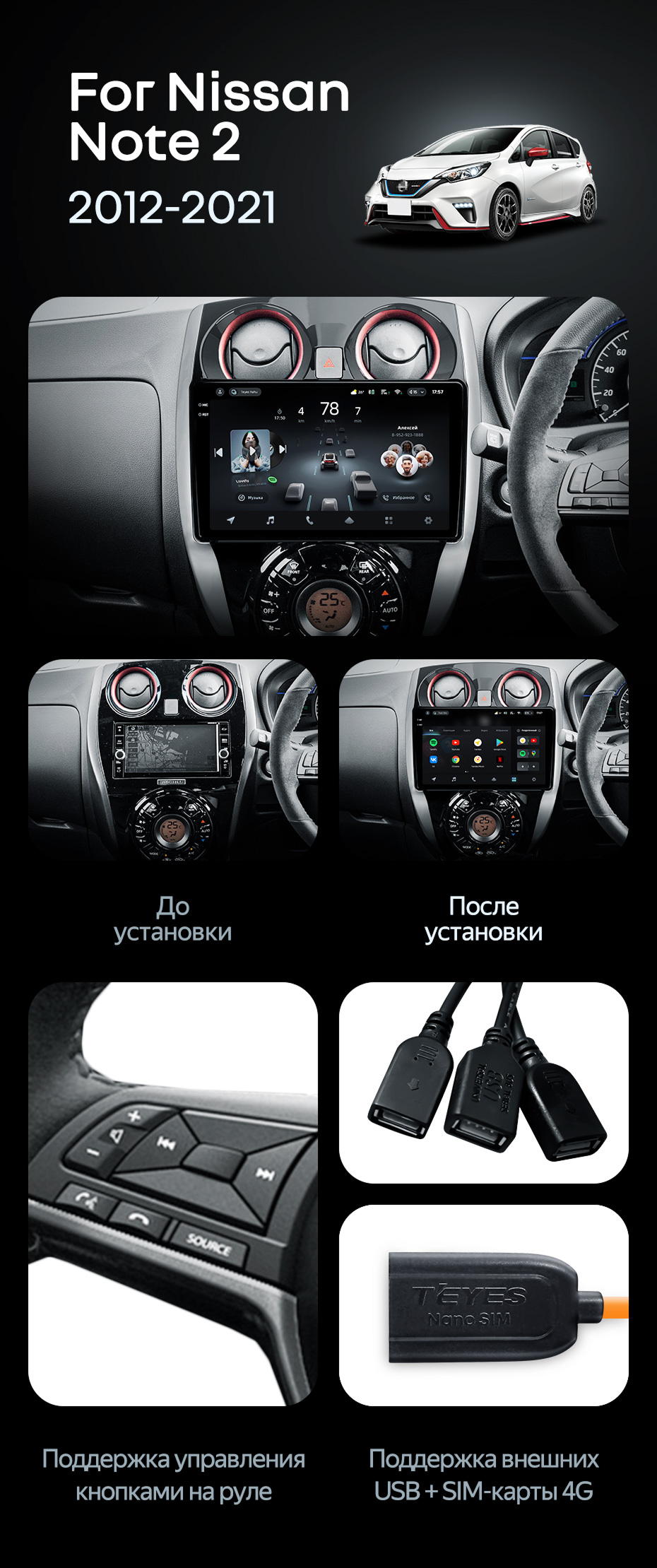 Штатная магнитола Teyes CC4 Pro 12/256 Nissan Note 2 E12 (2012-2021) - купить всего за 69 240 руб. в интернет-магазине в Ярославле Teyes.com.ru. ✓ Самый лучший выбор мультимедиа ✓ Лучшая замена штатному ГУ ✓ Тел. +7 (800) 775-31-74