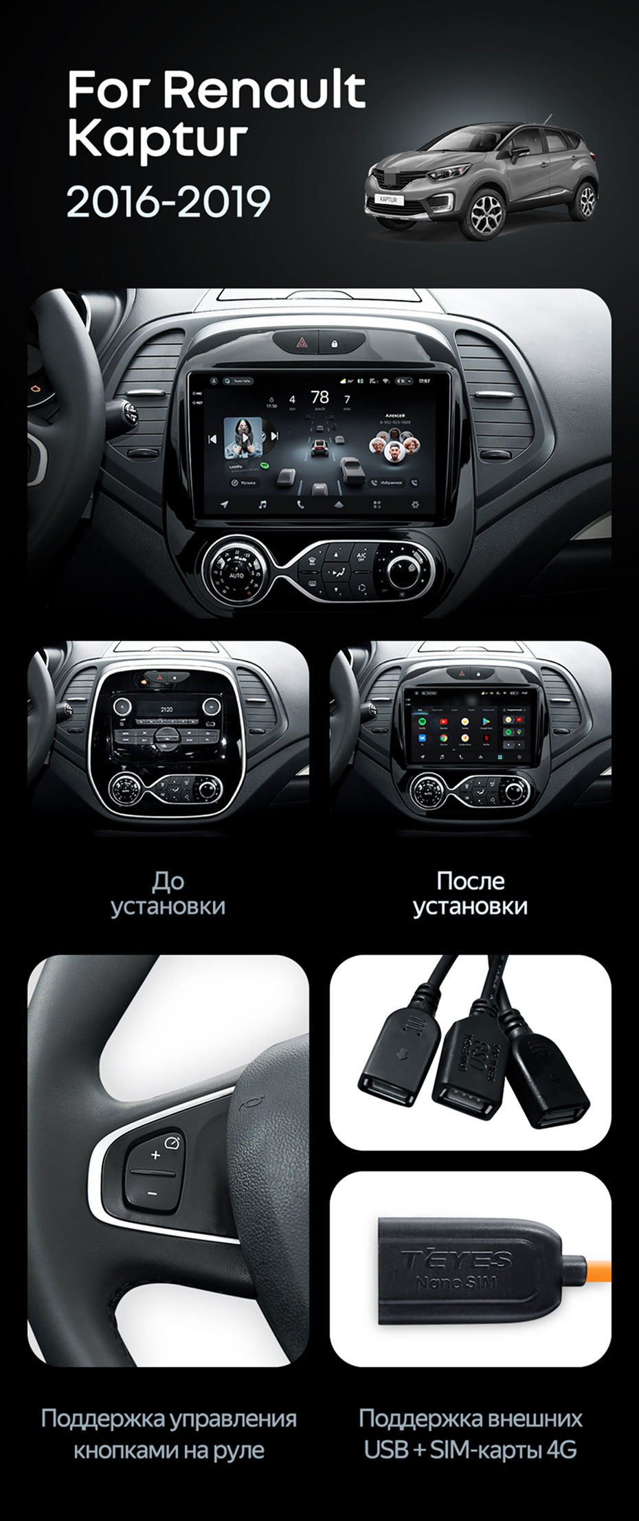 Штатная магнитола Teyes CC4 Pro 12/256 Renault Kaptur (2016-2019) F1 - купить всего за 71 780 руб. в интернет-магазине в Ярославле Teyes.com.ru. ✓ Самый лучший выбор мультимедиа ✓ Лучшая замена штатному ГУ ✓ Тел. +7 (800) 775-31-74