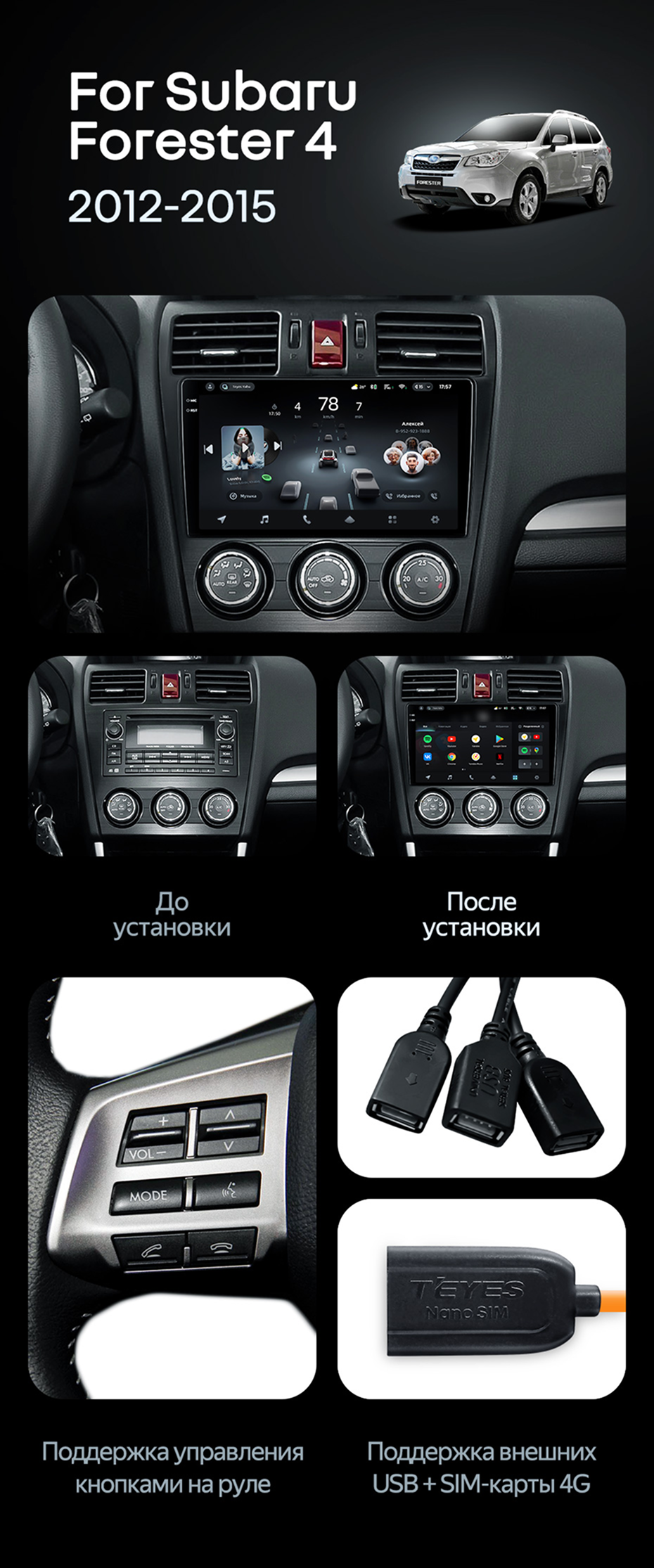 Штатная магнитола Teyes CC4 Pro 12/256 Subaru Forester 4 SJ (2012-2015) Тип-B - купить всего за 70 610 руб. в интернет-магазине в Ярославле Teyes.com.ru. ✓ Самый лучший выбор мультимедиа ✓ Лучшая замена штатному ГУ ✓ Тел. +7 (800) 775-31-74