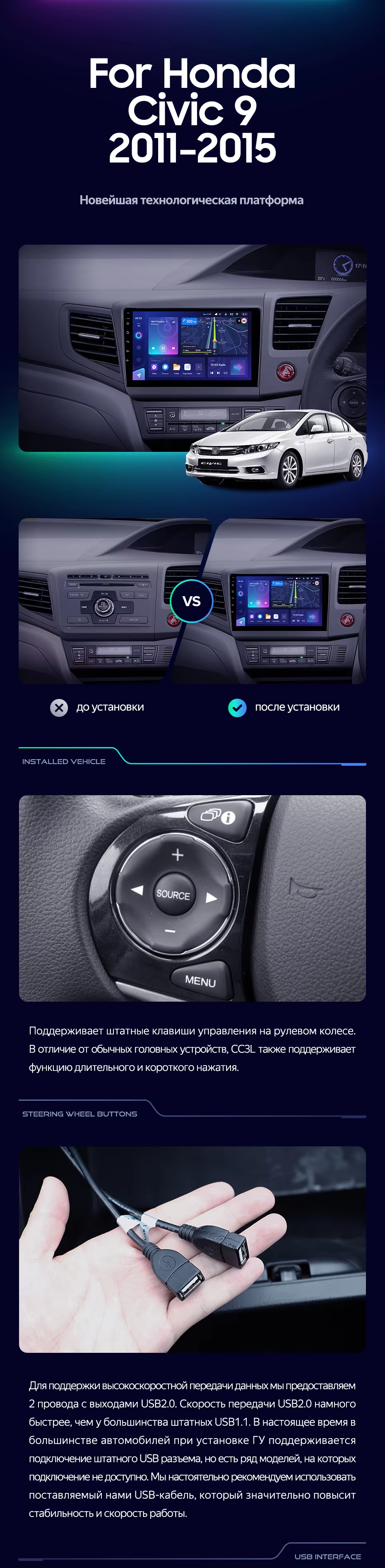Штатная магнитола Teyes CC4 Pro 8/128 Honda Civic 9 FB FK FD (2011-2015) Правый руль - купить всего за 63 660 руб. в интернет-магазине в Ярославле Teyes.com.ru. ✓ Самый лучший выбор мультимедиа ✓ Лучшая замена штатному ГУ ✓ Тел. +7 (800) 775-31-74