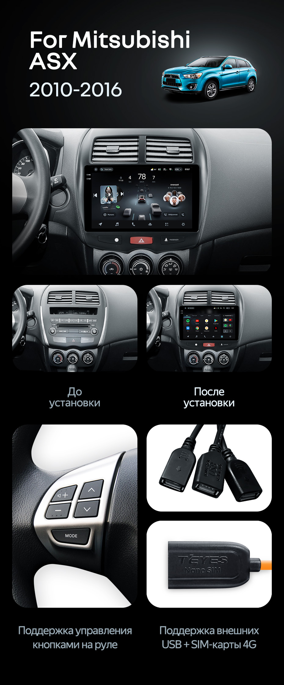 Штатная магнитола Teyes CC4 Pro 8/128 Mitsubishi ASX 1 (2010-2016) Тип-A - купить всего за 58 010 руб. в интернет-магазине в Ярославле Teyes.com.ru. ✓ Самый лучший выбор мультимедиа ✓ Лучшая замена штатному ГУ ✓ Тел. +7 (800) 775-31-74