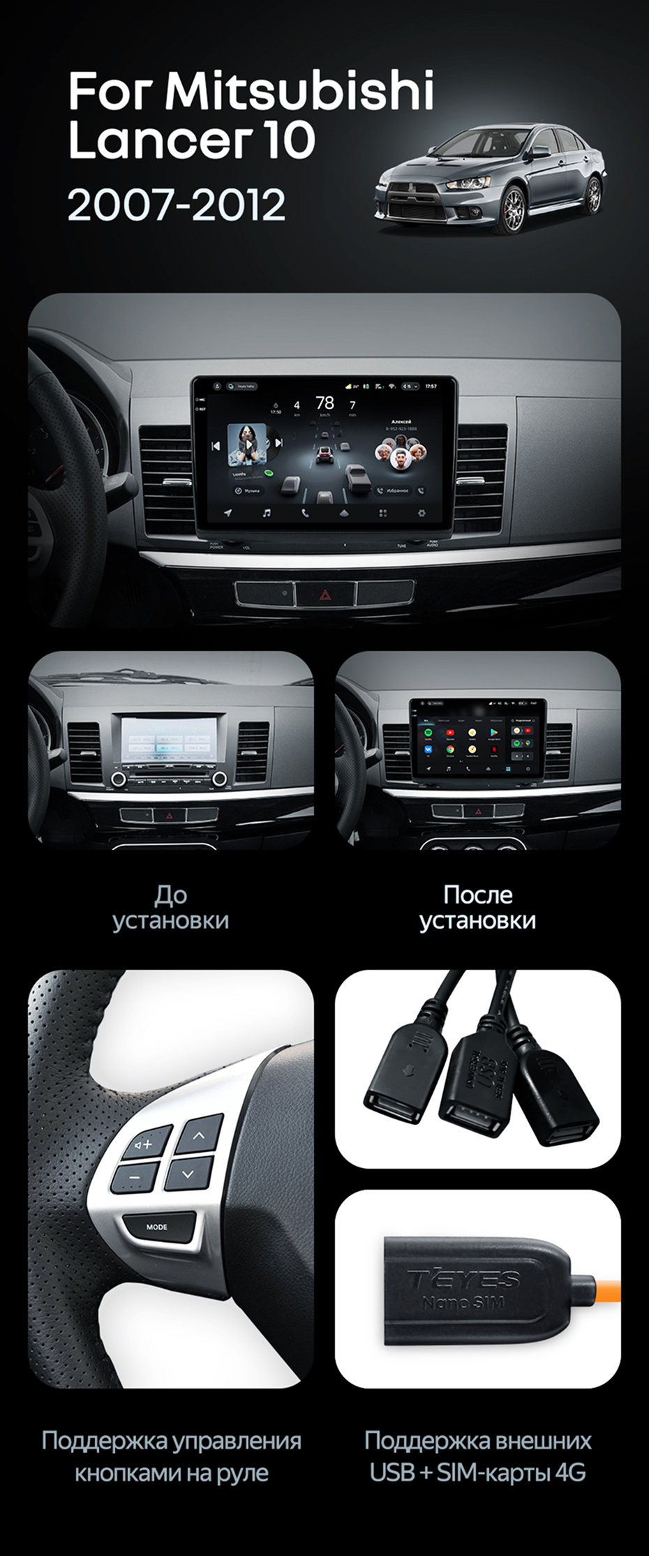 Штатная магнитола Teyes CC4 Pro 8/128 Mitsubishi Lancer 10 CY (2007-2012) Тип-A - купить всего за 57 750 руб. в интернет-магазине в Ярославле Teyes.com.ru. ✓ Самый лучший выбор мультимедиа ✓ Лучшая замена штатному ГУ ✓ Тел. +7 (800) 775-31-74