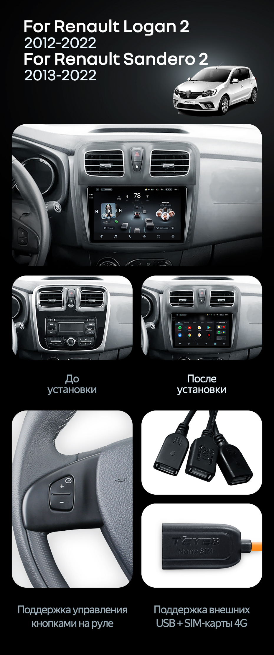 Штатная магнитола Teyes CC4 Pro 8/128 Renault Logan 2 (2012-2022) F2 - купить всего за 58 280 руб. в интернет-магазине в Ярославле Teyes.com.ru. ✓ Самый лучший выбор мультимедиа ✓ Лучшая замена штатному ГУ ✓ Тел. +7 (800) 775-31-74