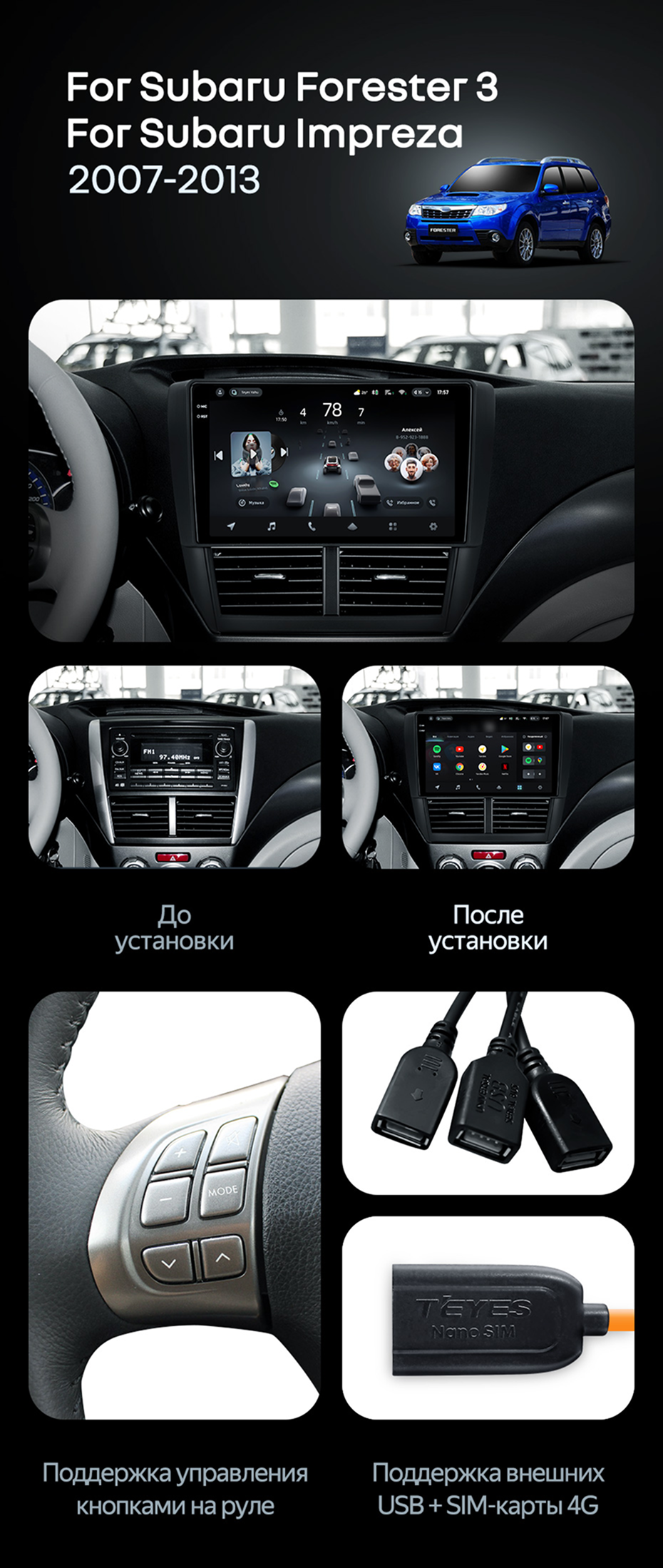 Штатная магнитола Teyes CC4 Pro 8/128 Subaru Forester 3 SH (2007-2013) - купить всего за 58 180 руб. в интернет-магазине в Ярославле Teyes.com.ru. ✓ Самый лучший выбор мультимедиа ✓ Лучшая замена штатному ГУ ✓ Тел. +7 (800) 775-31-74