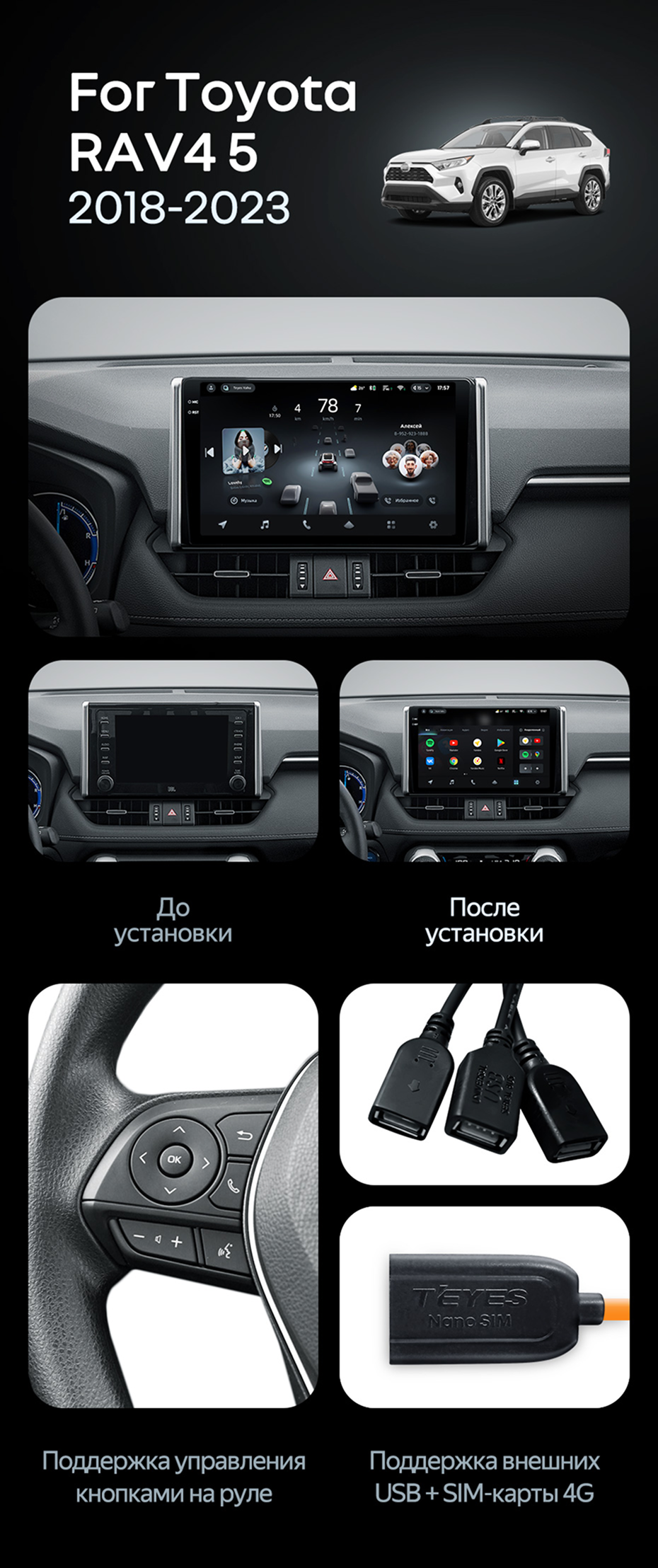 Штатная магнитола Teyes CC4 Pro 8/128 Toyota RAV4 XA50 (2018-2023) F1 - купить всего за 59 240 руб. в интернет-магазине в Ярославле Teyes.com.ru. ✓ Самый лучший выбор мультимедиа ✓ Лучшая замена штатному ГУ ✓ Тел. +7 (800) 775-31-74