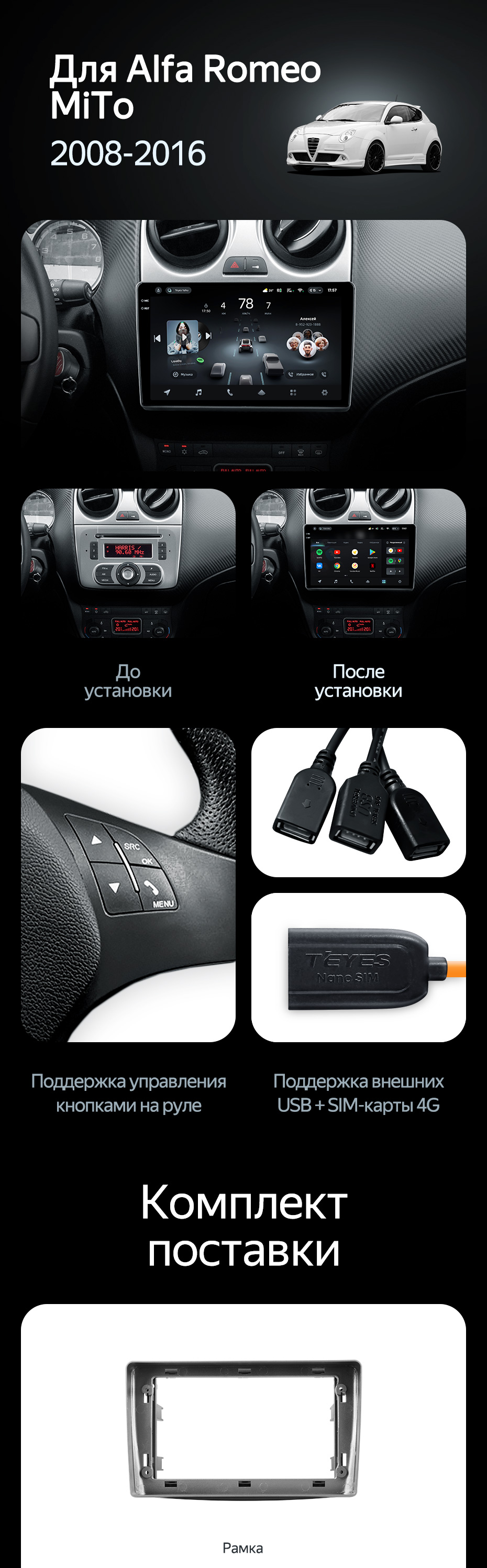Штатная магнитола Teyes CC4L 6/64 Alfa Romeo MiTo 955 (2008-2016) - купить всего за 33 500 руб. в интернет-магазине в Ярославле Teyes.com.ru. ✓ Самый лучший выбор мультимедиа ✓ Лучшая замена штатному ГУ ✓ Тел. +7 (800) 775-31-74