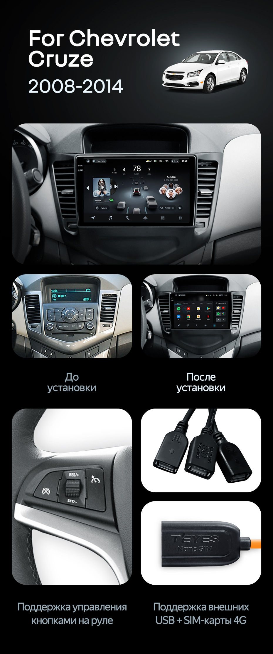 Штатная магнитола Teyes CC4L 6/64 Chevrolet Cruze J300 (2008-2014) - купить всего за 31 100 руб. в интернет-магазине в Ярославле Teyes.com.ru. ✓ Самый лучший выбор мультимедиа ✓ Лучшая замена штатному ГУ ✓ Тел. +7 (800) 775-31-74