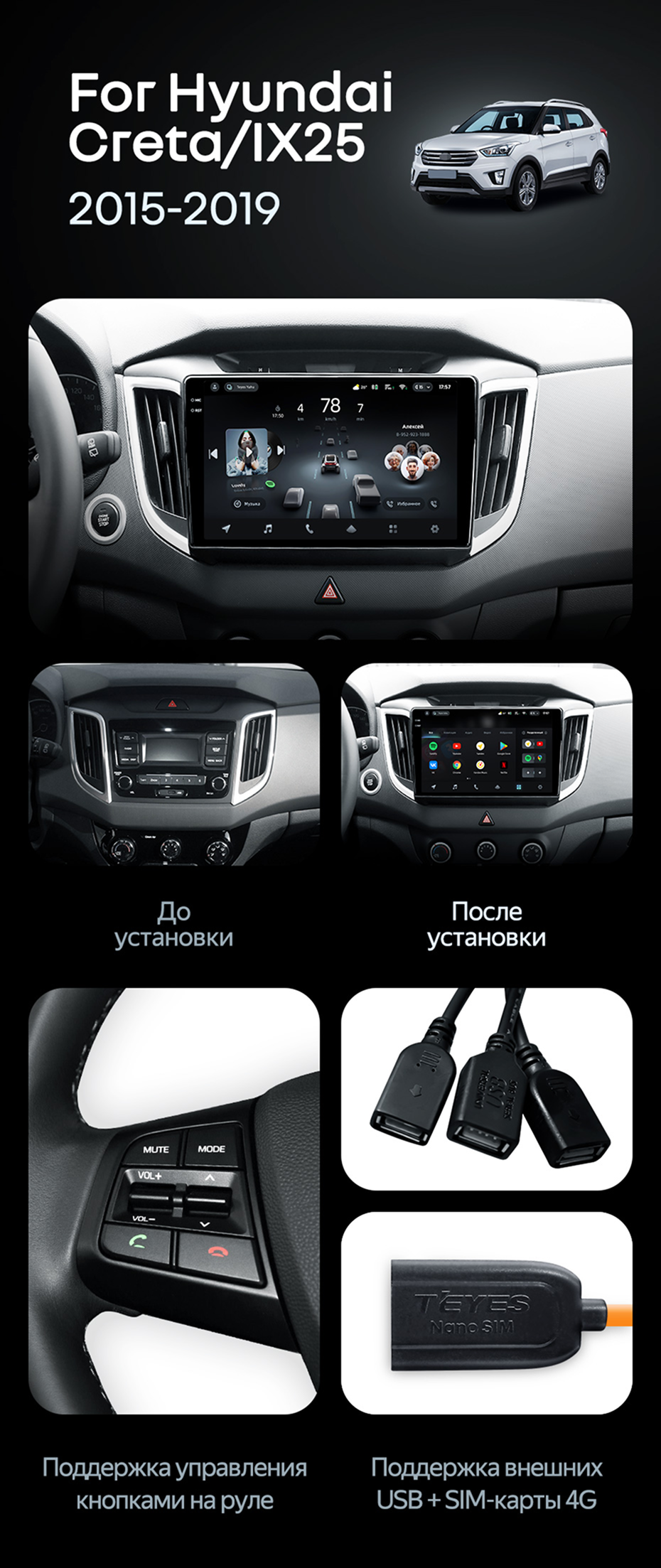 Штатная магнитола Teyes CC4L 6/64 Hyundai Creta 1 (2015-2019) с кнопками - купить всего за 31 900 руб. в интернет-магазине в Ярославле Teyes.com.ru. ✓ Самый лучший выбор мультимедиа ✓ Лучшая замена штатному ГУ ✓ Тел. +7 (800) 775-31-74