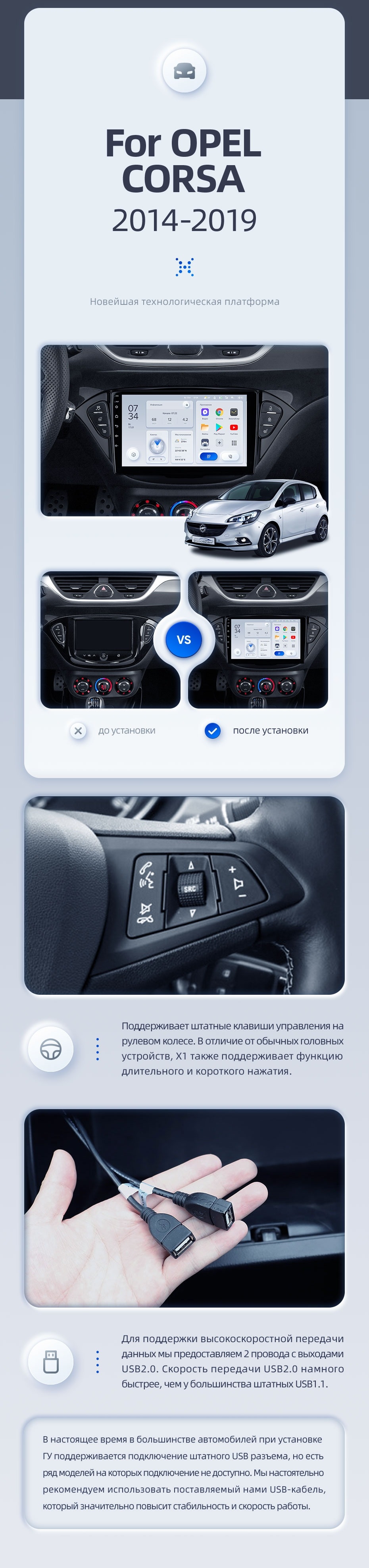 | USB | 3×USB 2.0 + USB 3.0 | Доп. аксессуары | Передняя/задняя AHD-камера, DVR-регистратор, TPMS, парковочный OBD, Type-C → HDMI |