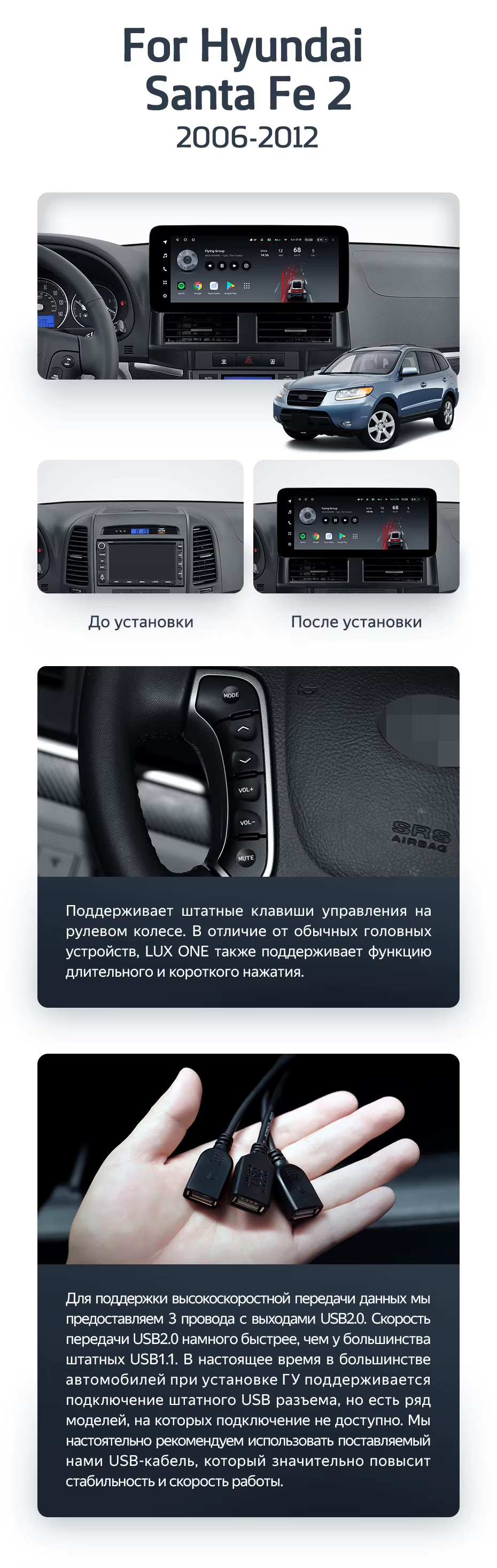 Штатная магнитола Teyes LUX ONE 4/64 Hyundai Santa Fe 2 (2006-2012) - купить всего за 46 300 руб. в интернет-магазине в Ярославле Teyes.com.ru. ✓ Самый лучший выбор мультимедиа ✓ Лучшая замена штатному ГУ ✓ Тел. +7 (800) 775-31-74