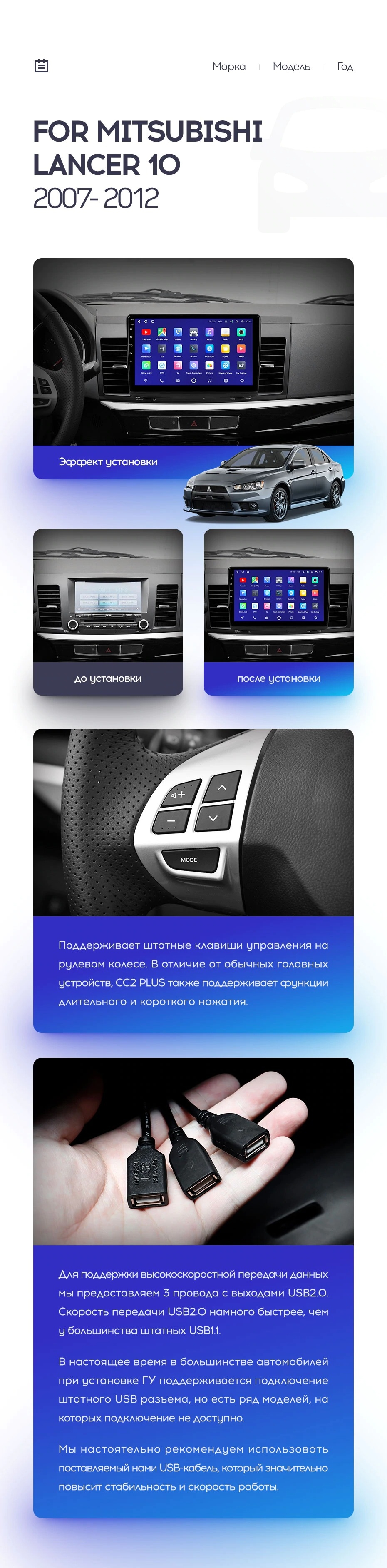 Полный комплект установки магнитолы Teyes с рамкой и проводкой можно выбрать в каталоге штатных магнитол Mitsubishi Lancer 10 CY (2007-2012).
